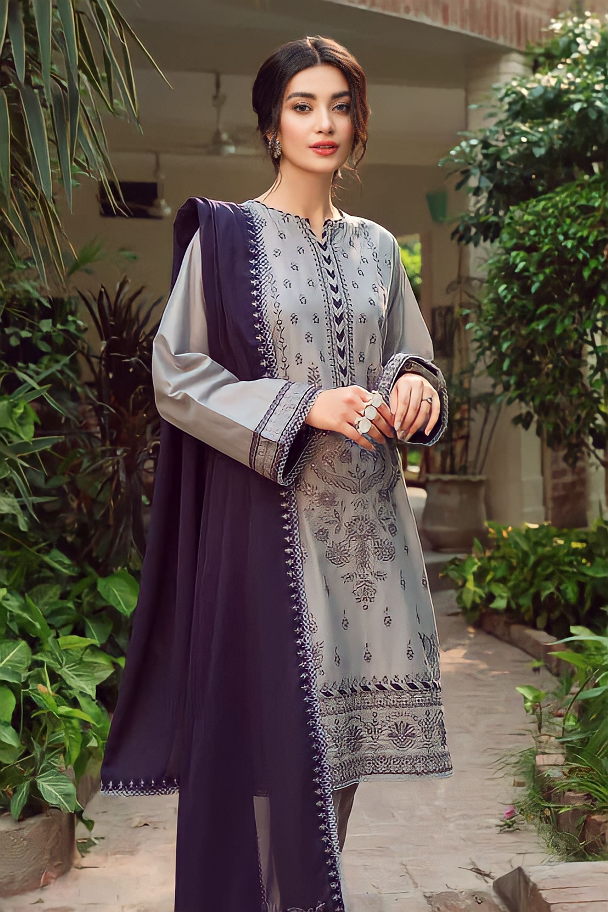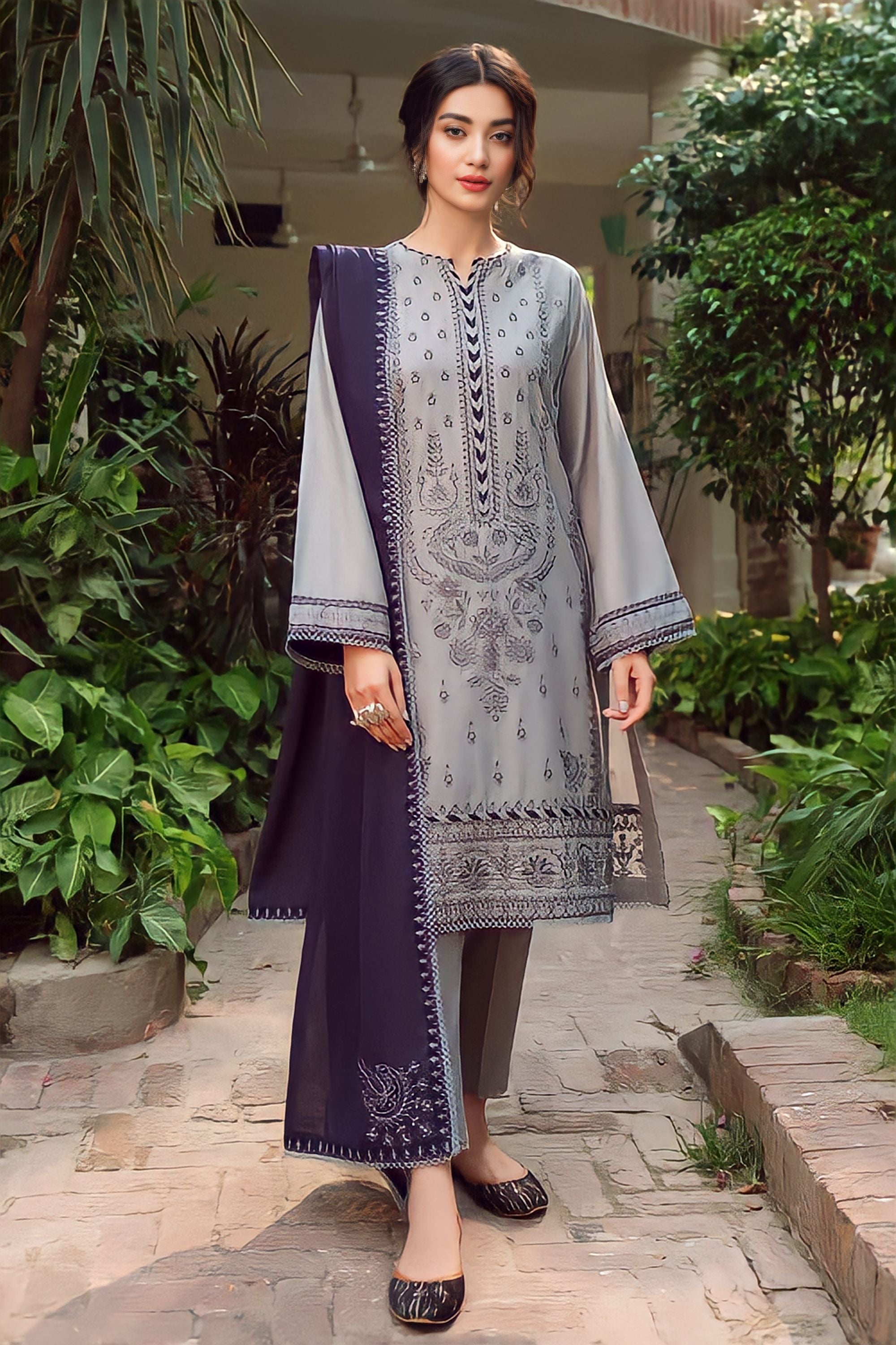 ● Neckline Embroidered.