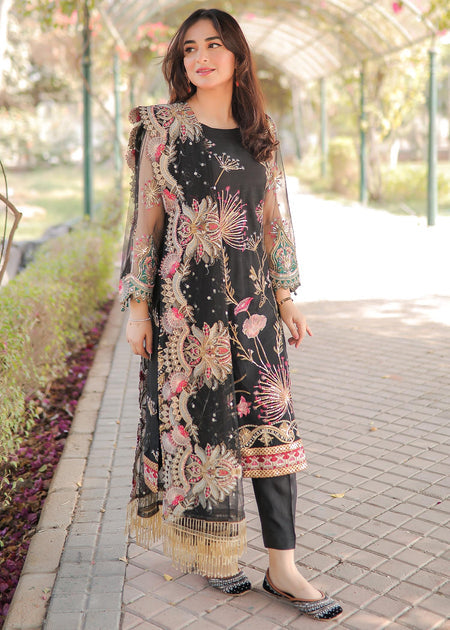 ● Luxury Unstitched Summer Collection Lawn Stuff 3 Piece Embroidered Suit.