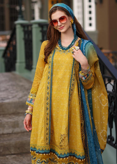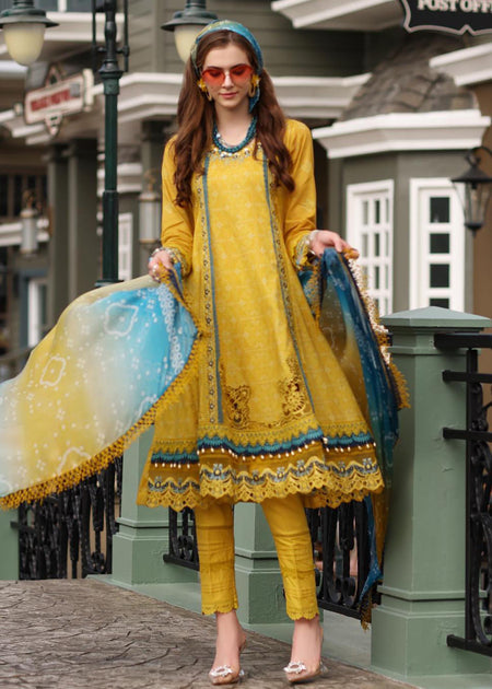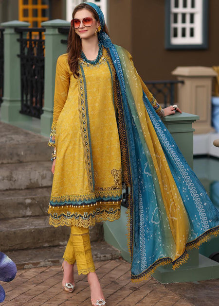 β Luxury Unstitched Summer Collection Lawn Stuff 3 Piece Full Embroidered Suit With Premium Silk Printed Dupatta With Extra Embroidered Patches.