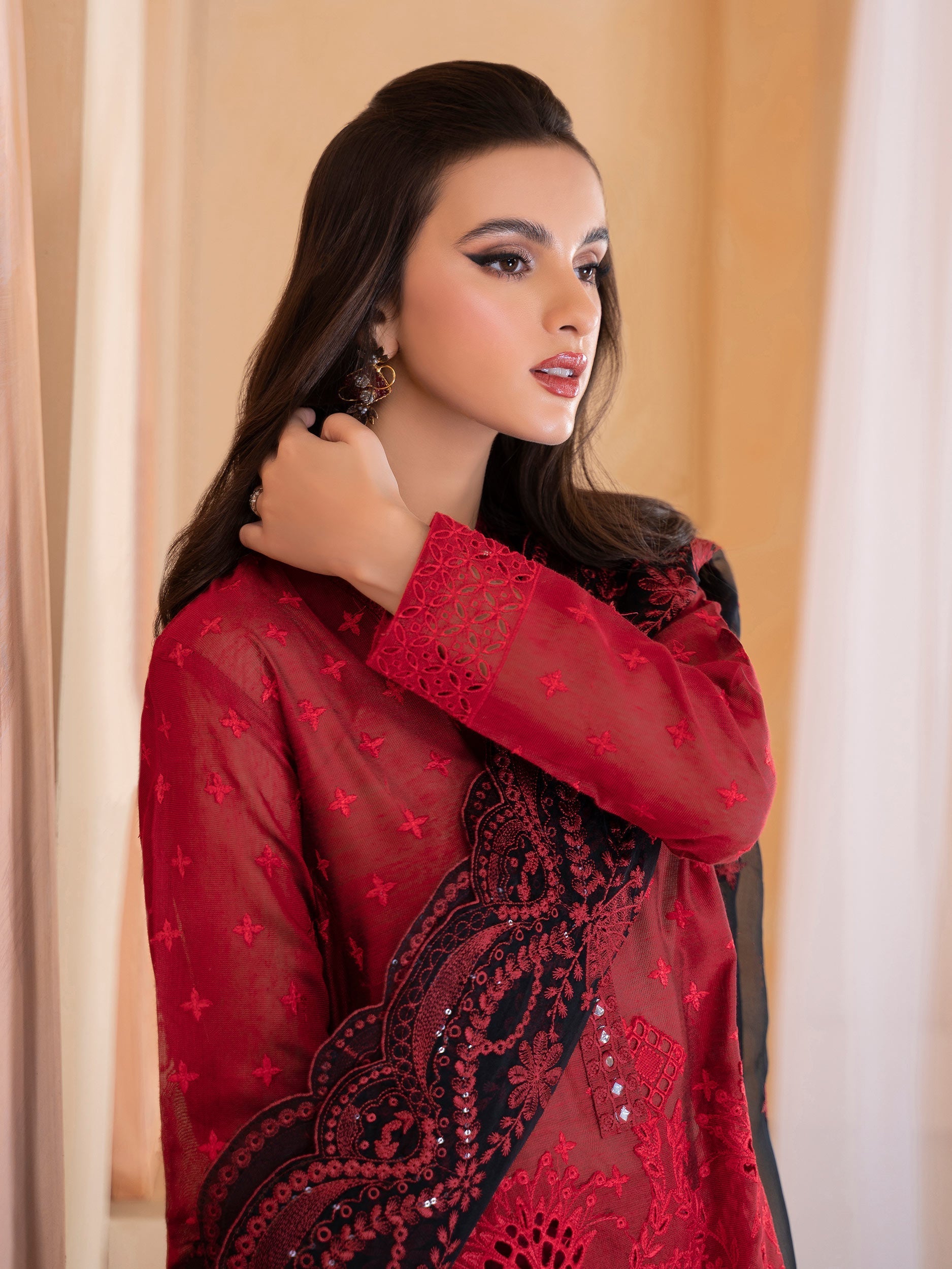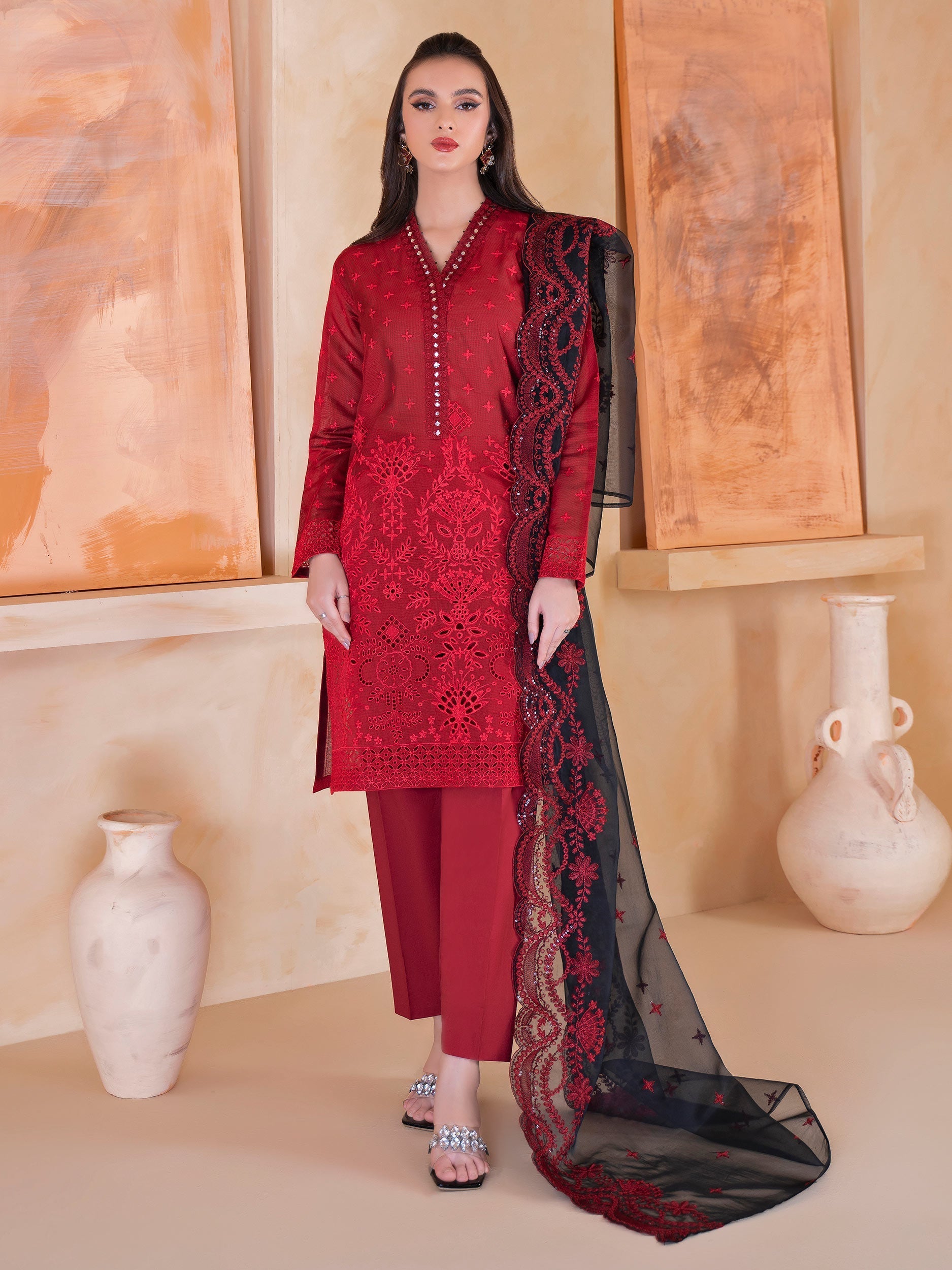 β Luxury Unstitched Summer Collection Lawn Stuff 3 Piece Full Embroidered Chikenkari Suit With Extra Embroidered Patches.