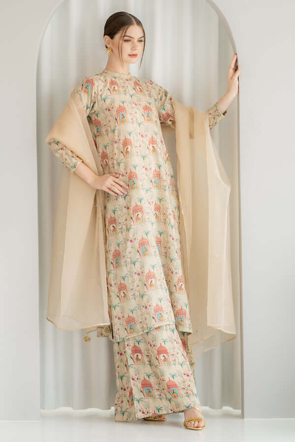 Lawn Stuff 3 Piece Digital Printed With Organza Dupatta.