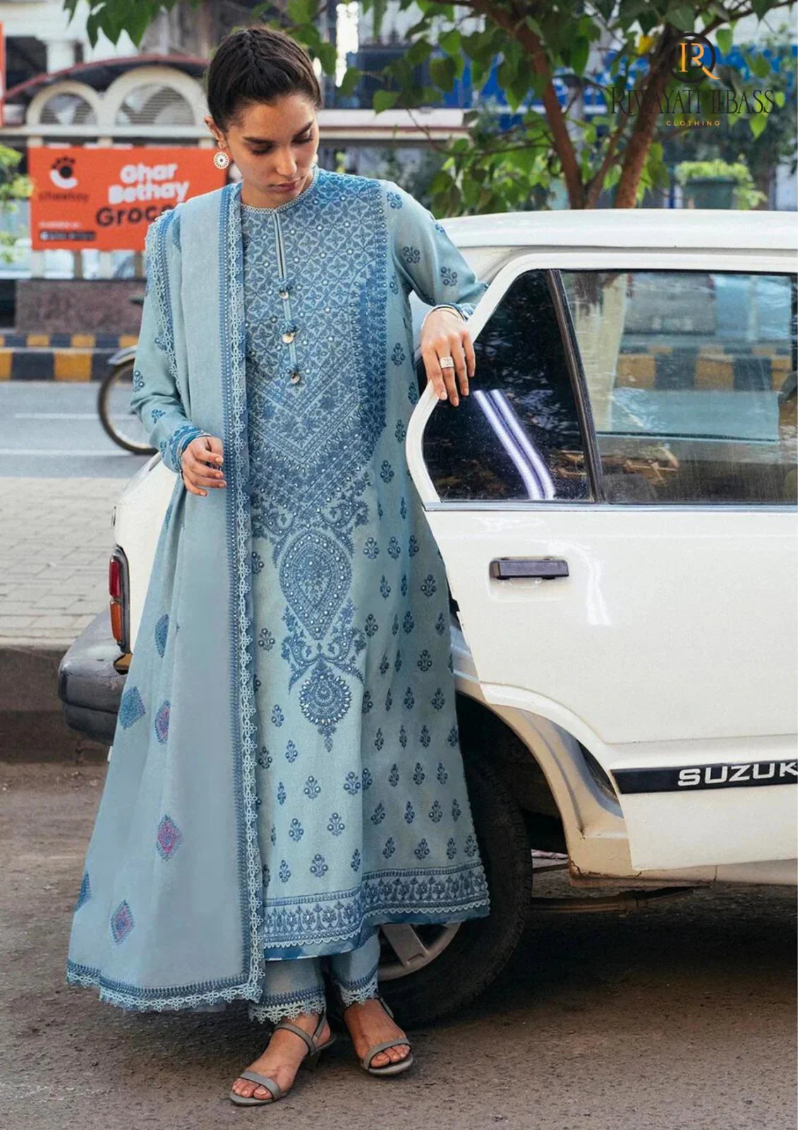 ● Luxury Unstitched Summer Collection Lawn Stuff 3 Piece Full Embroidered Suit With Sequence Work Extra Embroidered Patches.